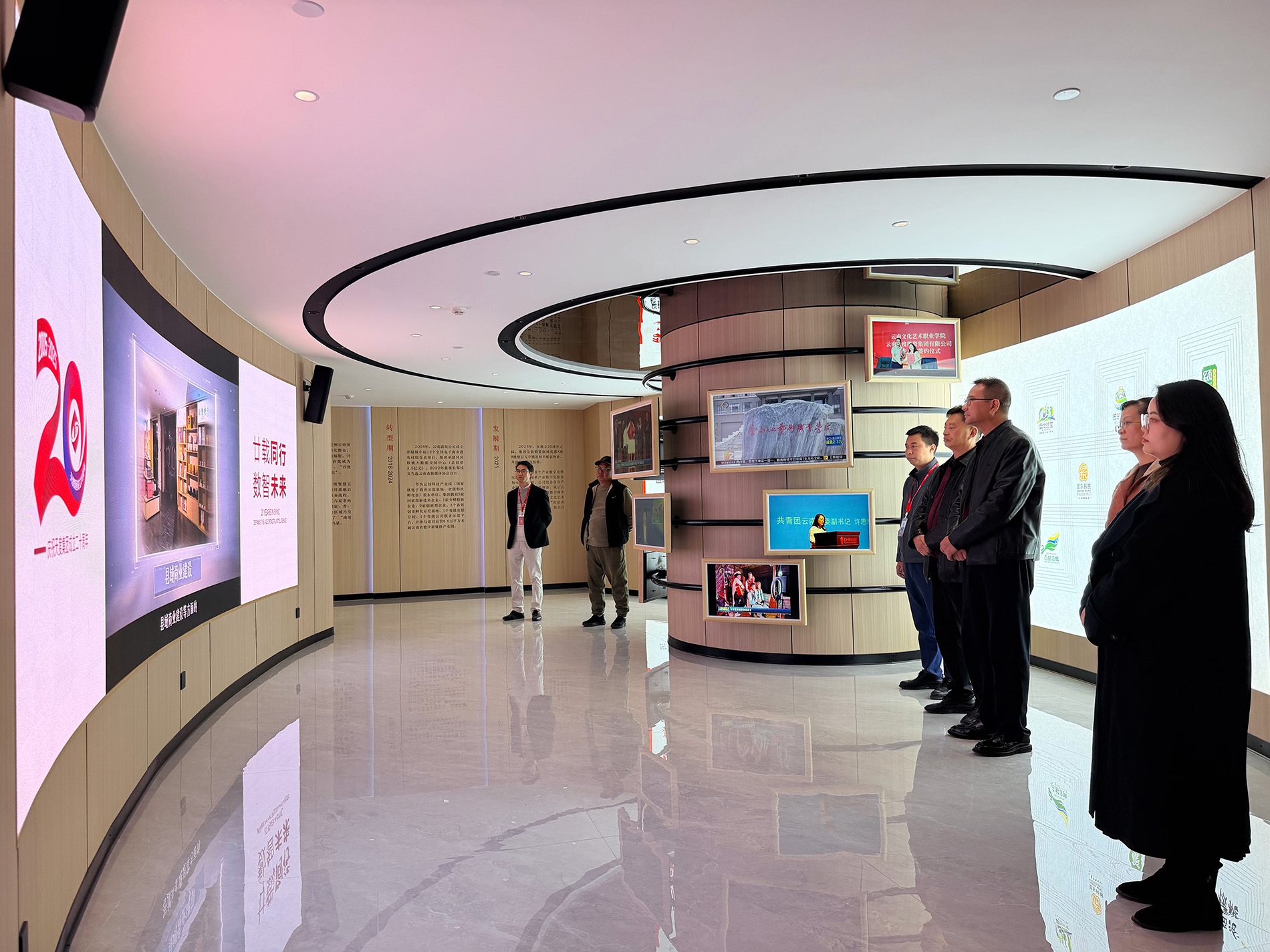 在数字化展厅,竞技宝JJB团体董事长郑桂文向侬援校长一行系统介绍了团体二十年生长历程、焦点业务架构与未来战略愿景。郑桂文董事长回首了竞技宝JJB从创业起步到如今成为云南省工业数字化领域重要加入者的生长路径,重点论述了团体在“聚焦数字经济、服务乡村振兴”战略指引下,在人工智能技术应用、工业互联网平台建设、电子商务与数字化供应链、产教融合共建工业学院等板块的探索与结果。